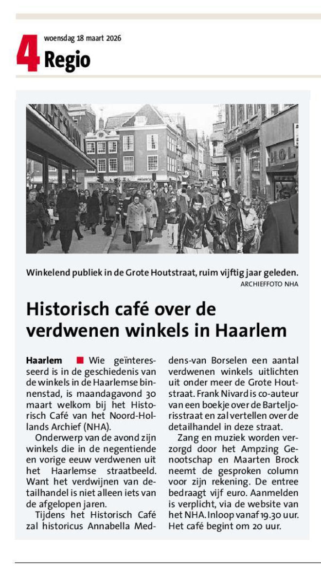 Aankondiging lezing over verdwenen winkels in de Grote-Houtstraat
